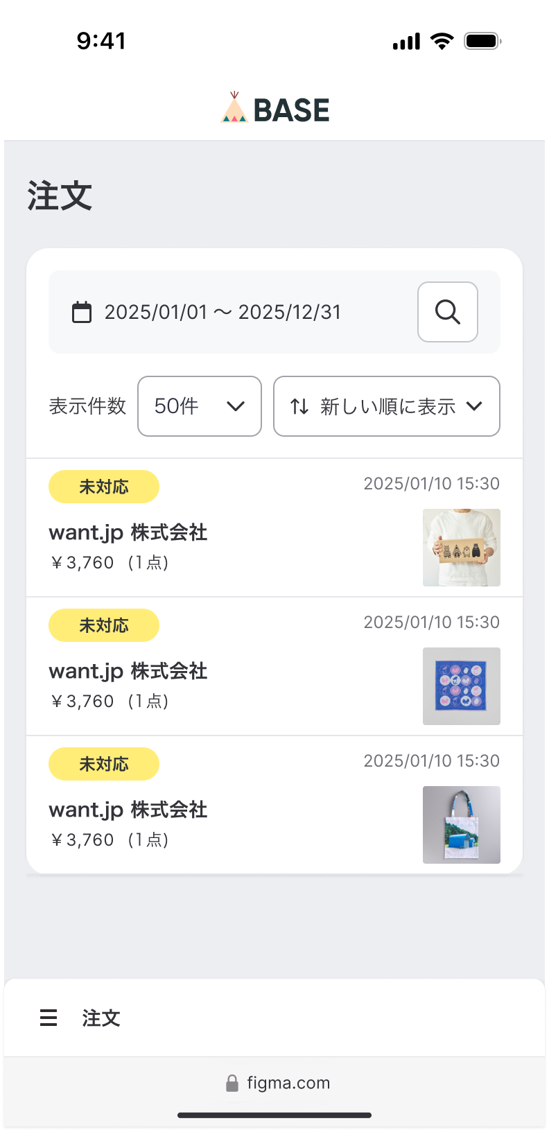 ※売上確定金額は、注文合計金額から「BASEかんたん決済手数料」「サービス利用料」および「かんたん海外販売利用料」を差し引いた金額が表示されます。