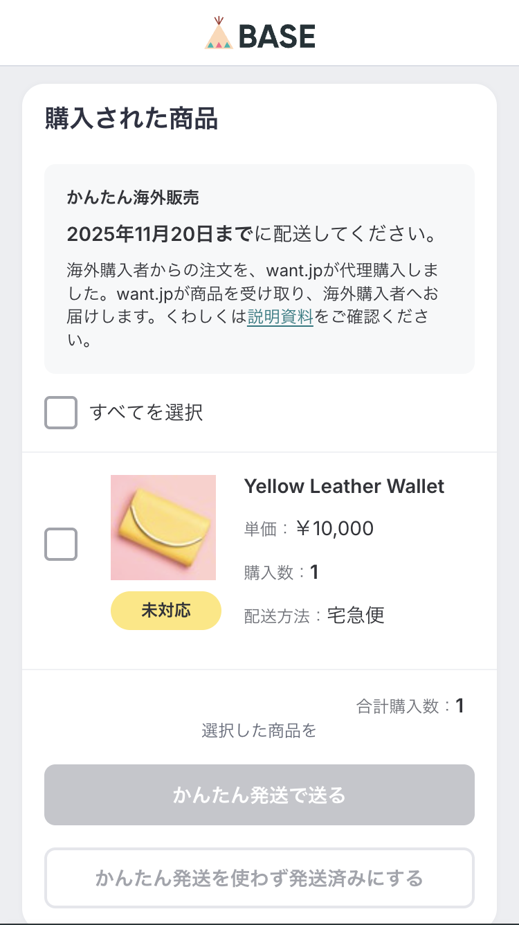 ※購入者(海外の送り先)の「国名」「州・地域名」は、ショップ側でも確認できます。 - 「want.jp株式会社」を介した購入となるため、購入者とのコミュニケーションをショップから取ることはできません